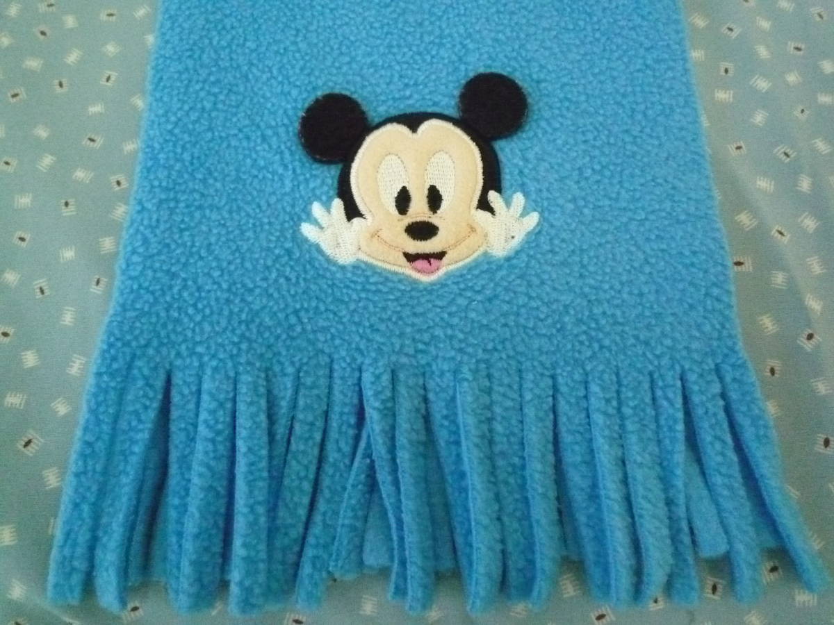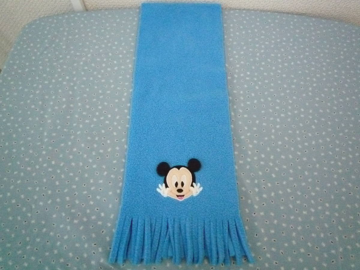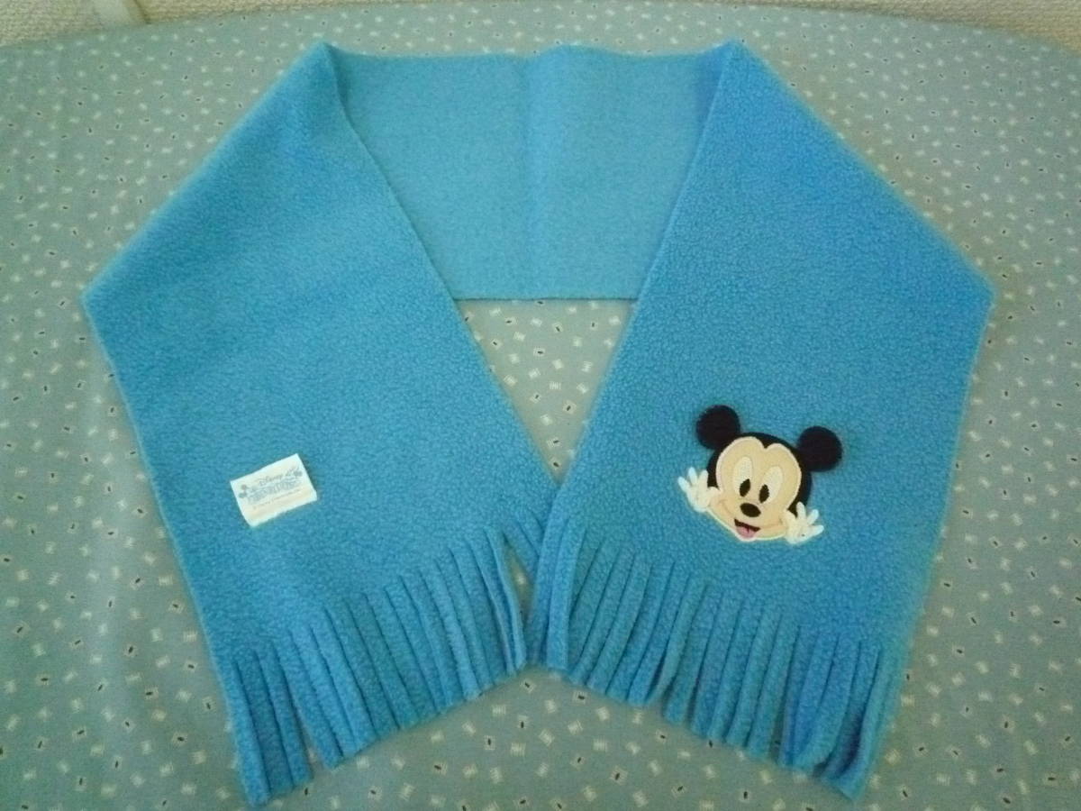 ★ディズニーBABIES ミッキーマウス ブルーフリースマフラーカットフリンジ付