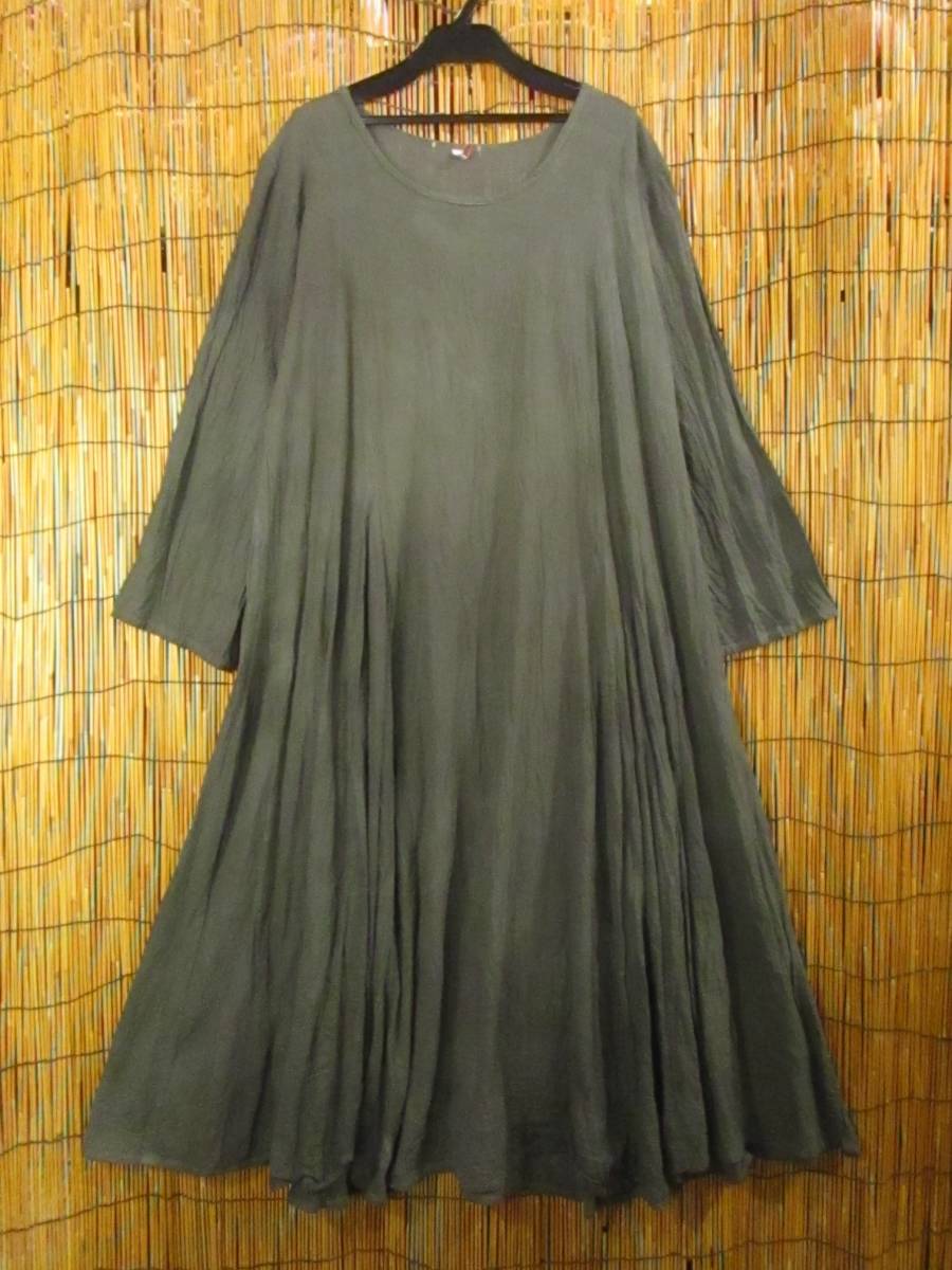①新品*コットン素材*手染め*ゆったりサイズ*長袖*フレアーロングワンピース