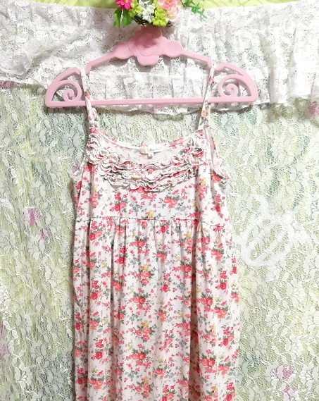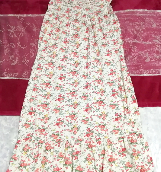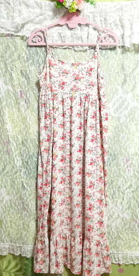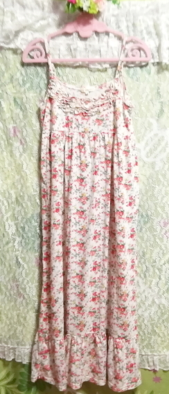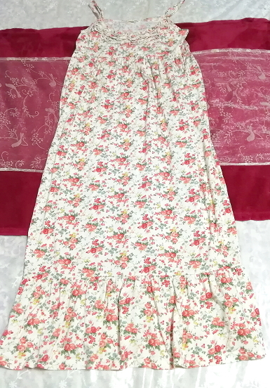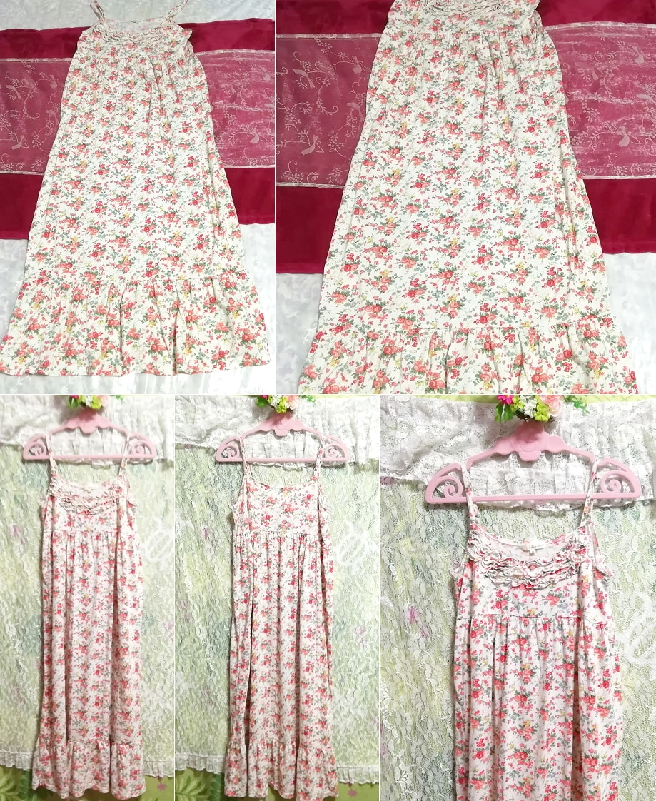 白ホワイト花柄ネグリジェキャミソールロングスカートワンピース White floral pattern negligee camisole long skirt dress