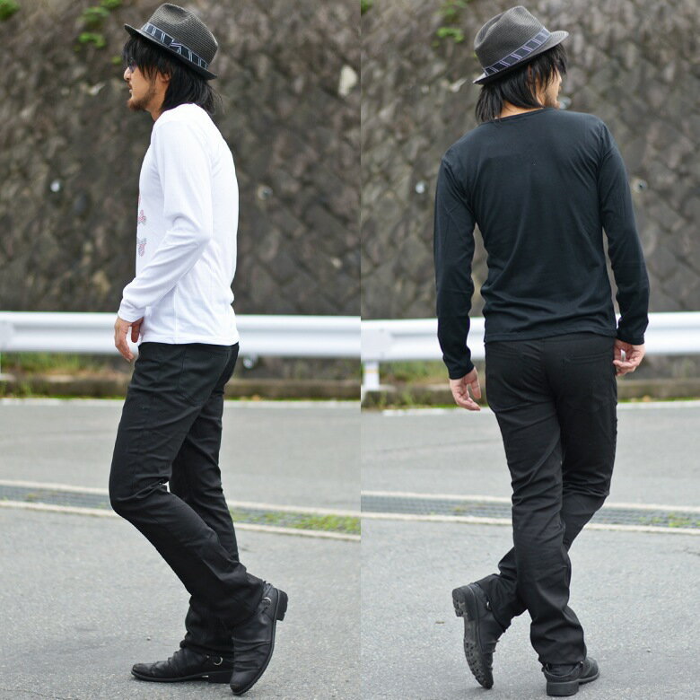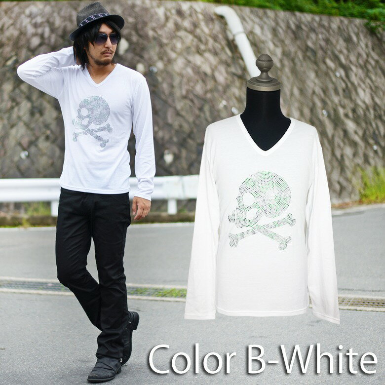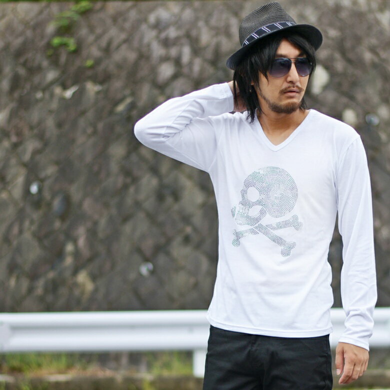 フロントにはラインストーンであしたらった煌びやかなスカルを落とし込んだインパクトのあるロンT。