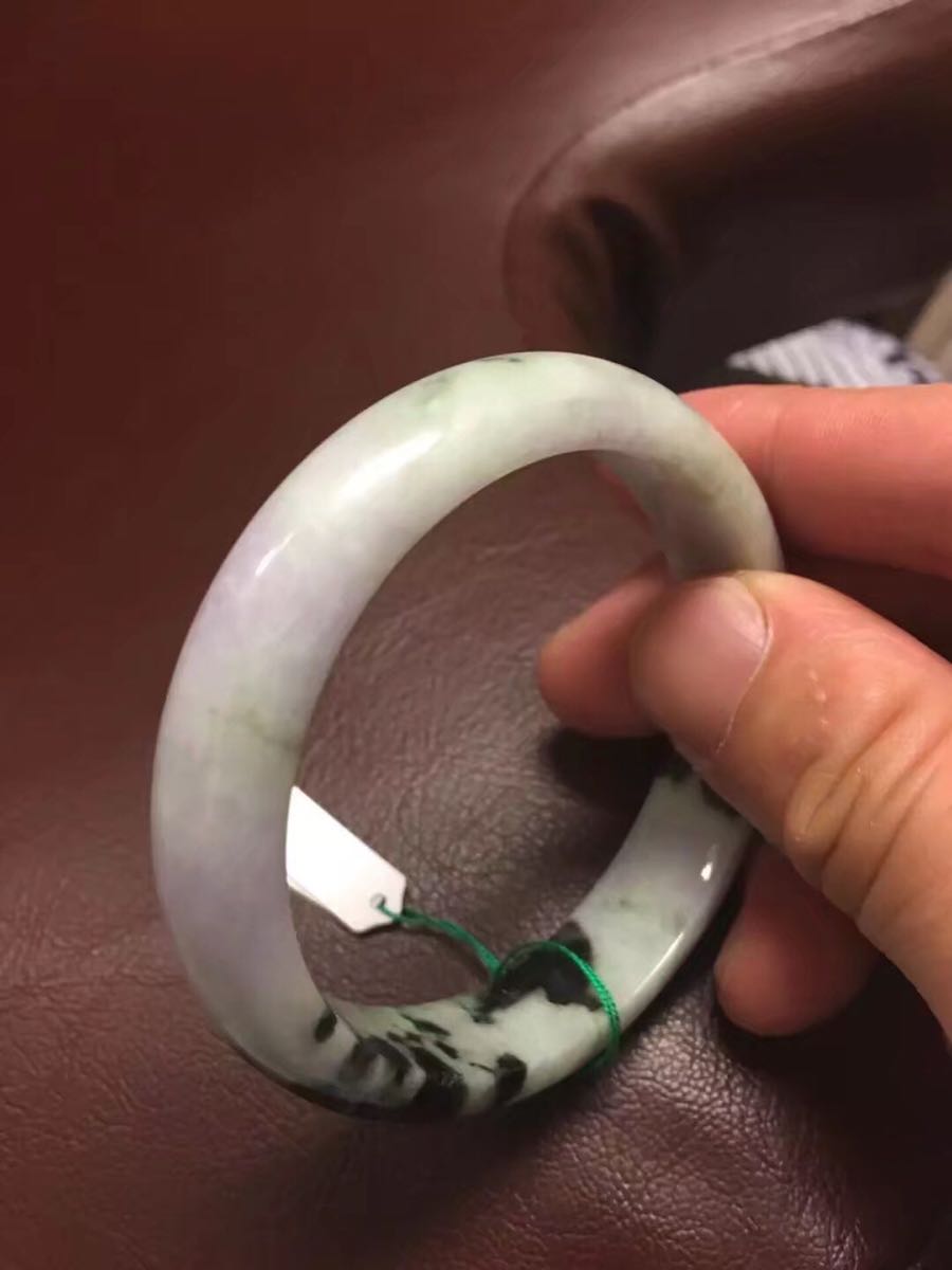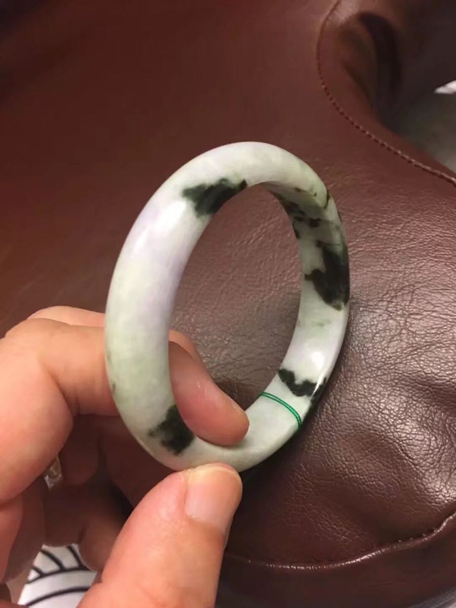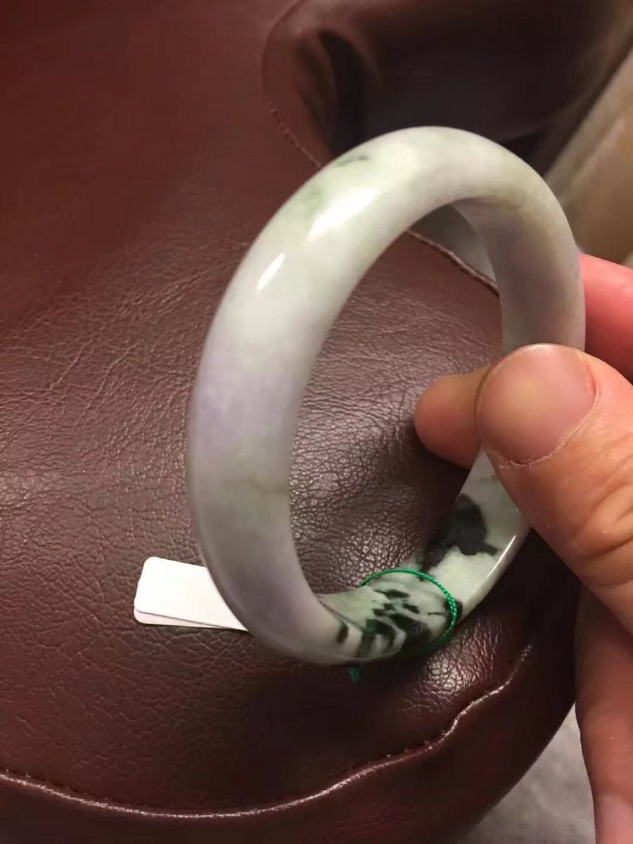 ビルマ産翡翠バングル,本物保証,紫羅蘭緑花,糯冰種,非常希少の珍品と思います。保証書付,内径59cm送料850