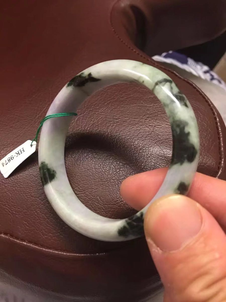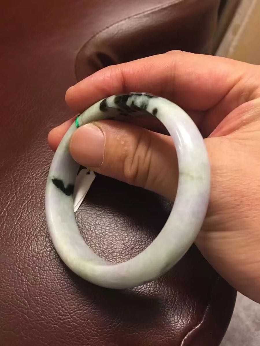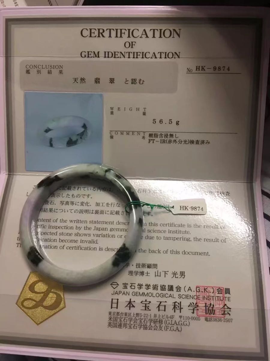 ビルマ産翡翠バングル,本物保証,紫羅蘭緑花,糯冰種,非常希少の珍品と思います。保証書付,内径59cm送料850