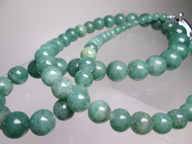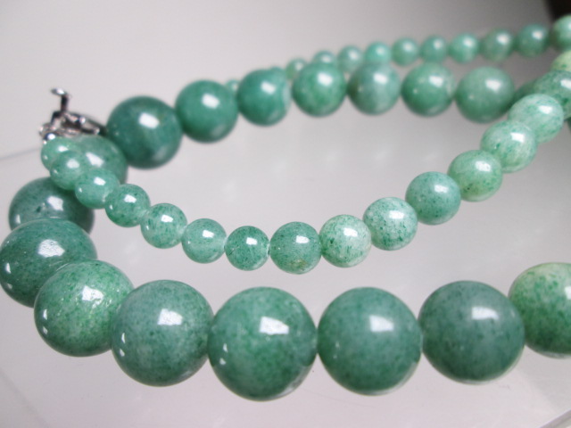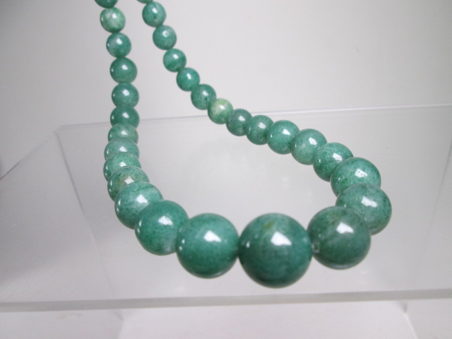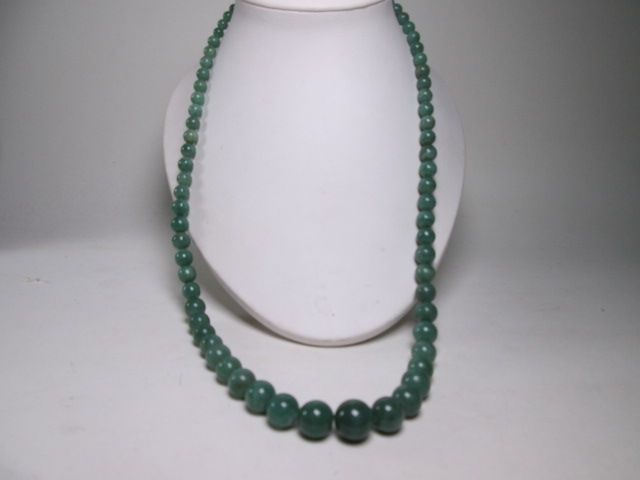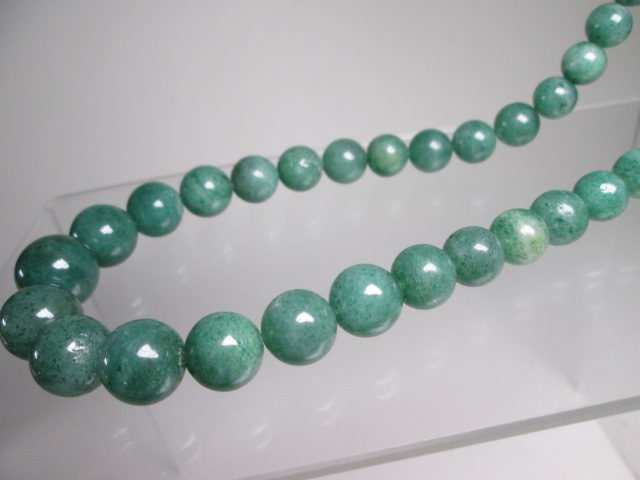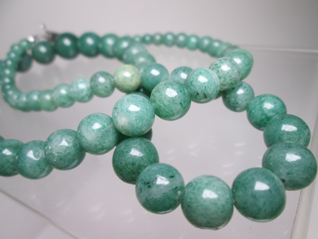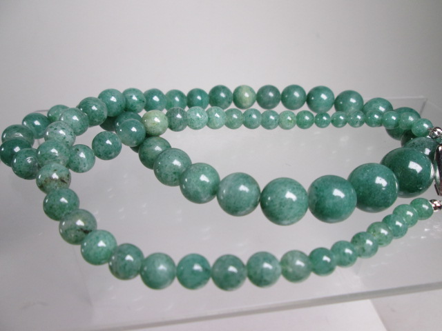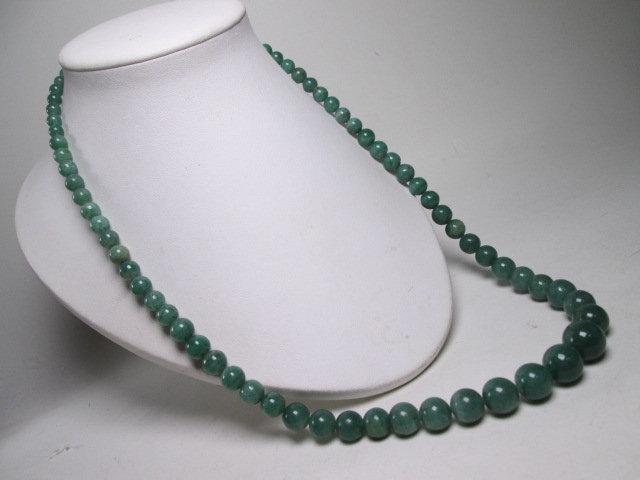 ☆洋銀 本翡翠玉 5,5mm~1,4cmのロングネックレス 78g