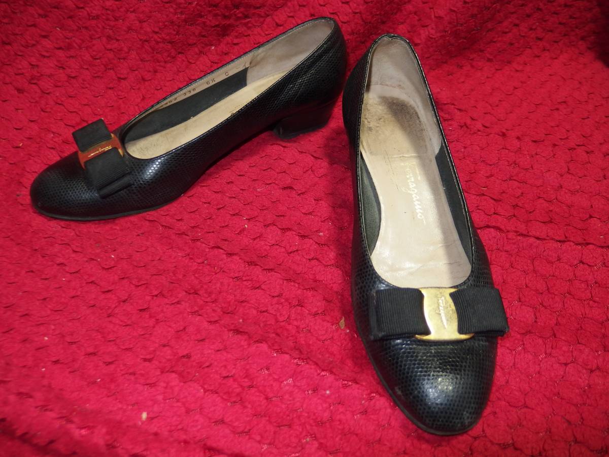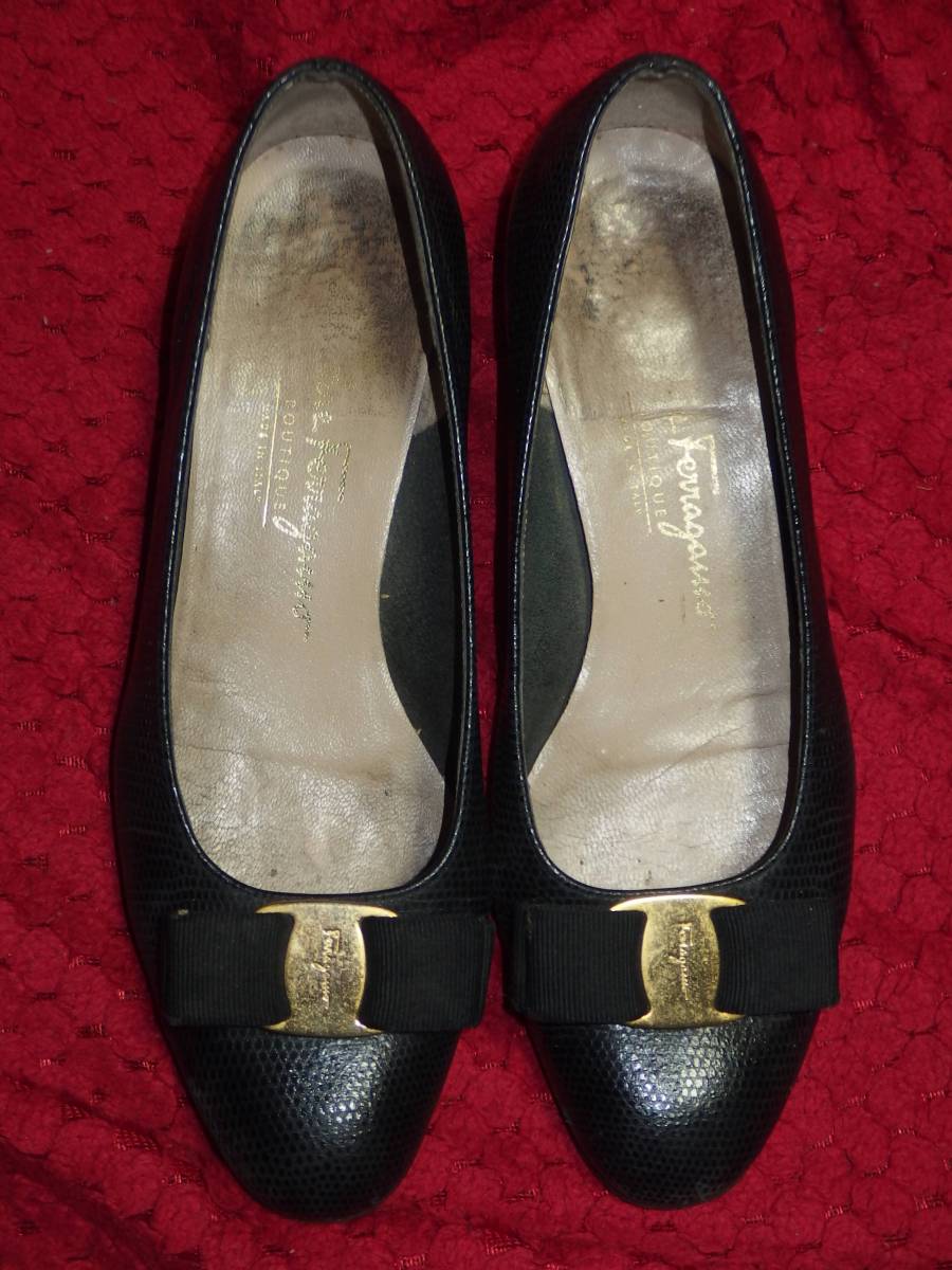 サルヴァトーレフェラガモSALVATORE FERRAGAMOパンプス婦人用レディースシューズ/6 1/2・6ハーフ/ローヒール/ボールパイソン爬虫類/定形外