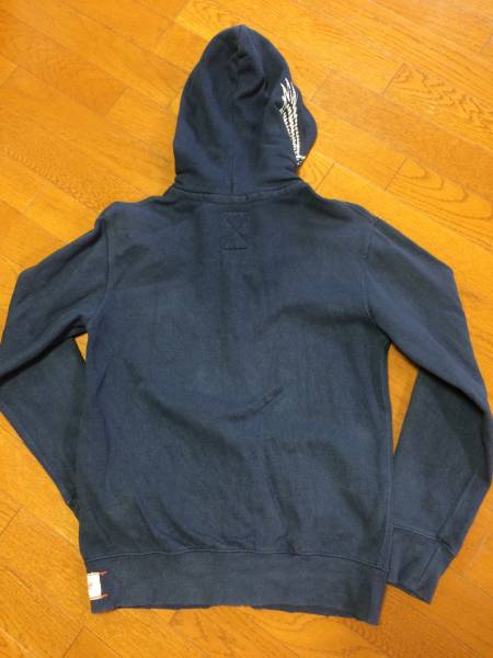 ワンポイントの刺繍とフードにプリントがあるのでフード出しインナーにしてもでもカッコよく着て頂けます。