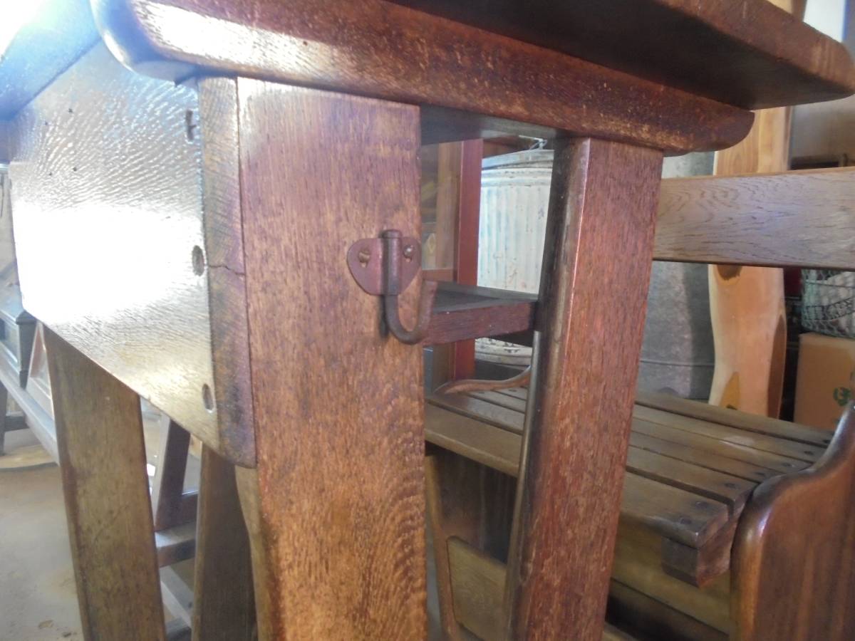 【古い木製学習机】1966年デスク椅子一体型チェア古道具アンティーク学校インテリア箪笥フック収納スペース家具ベンチガーデニング