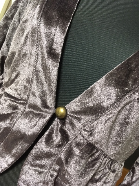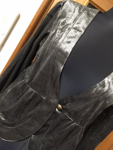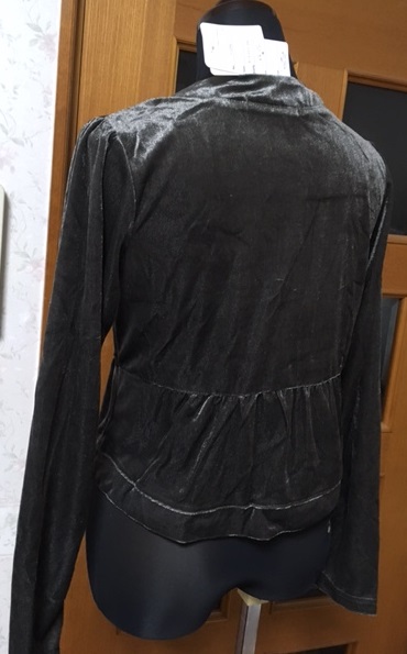 ★新品タグ付★抜群ストレッチ♪★肩ギャザーのパフ袖系の素敵なジャケット★ML★(シルバーグレー色)★着心地抜群の薄手ベロア★
