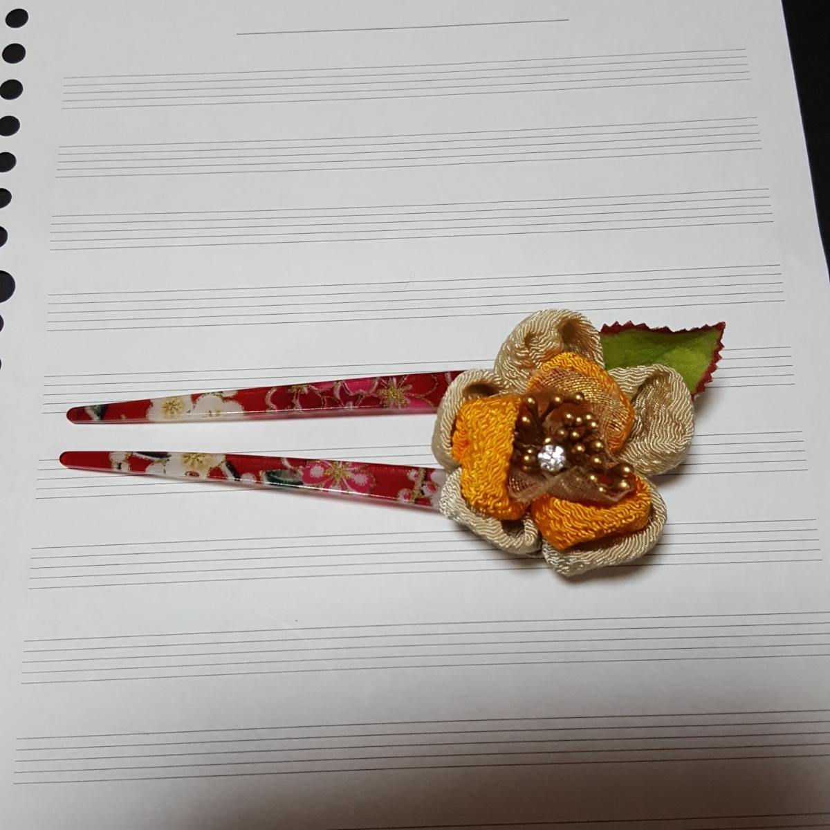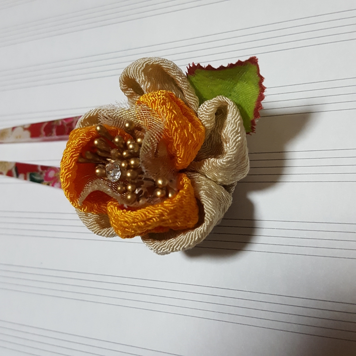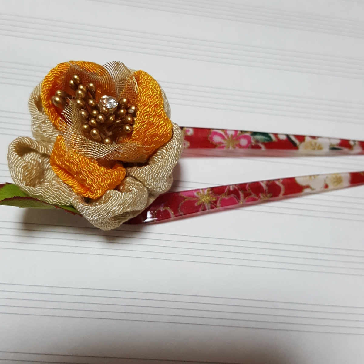 つまみ細工で、手作りかんざしつくりました。髪の毛や、帯、襟かざりにいかがですか?
