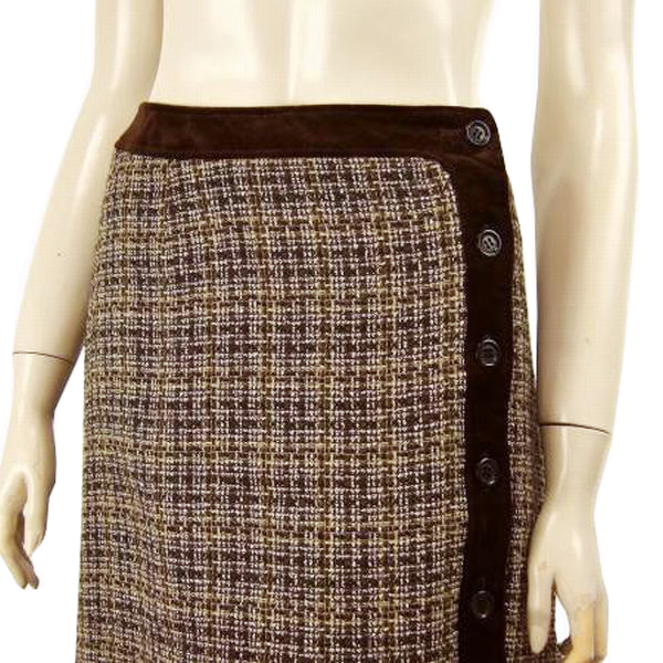 ![]() ![]() 落札後はオークション終了のお知らせメールに出品者からのメッセージが御座います。 自己紹介欄には急な休み等の記載をする場合が御座いますので一度お目通し頂きます様お願いいたします。ご一読の上オークション終了後2日以内の連絡、 落札後4日以内のご入金のお約束を守って頂ける方のご入札をお待ちしております。 小さい子供がおりますのでお急ぎのお取引を希望される方のご入札は遠慮下さいませ。 ---↓ここにブランド名記入---- ブランド名:Lois CRAYON ロイスクレヨン (株)アトリエ・サーティーフォー 日本製 ---↓ここに特徴記入---- 特徴:とてもしなやかで柔らかいシルク混ウール♪ブラウン系(マルーン系)ベロアトリム×チョコレートブラウン系×オフ白系のぷっくり織り地にベージュ系糸&ラメ入りの上品な格子柄!綺麗なセミタイトラップスカートです。 ---↓ここにサイズ記入---- サイズ : Mサイズ 表示(トルソーは9号です) 実寸 スカート丈63cm、ウエスト32cm、ピップ46cm、裾幅65cm、合わせ部7つボタン留 ---↓ここに素材記入---- 素材 : 毛66% 絹17% レーヨン15% ラメ2% 裏地 ポリエステル100% 別布 綿99% ポリウレタン1%