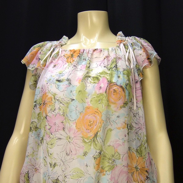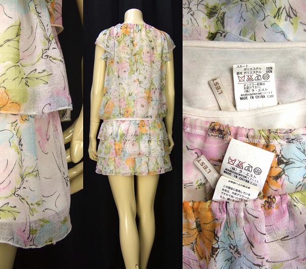 H 美品★L'EST ROSE レストローズ★淡色*綺麗な花柄&シワ加工*可憐ワンピーススーツ(セットアップ)*2表記★9号*M*38相当