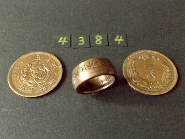 この商品は、明治15年発行の竜1銭銅貨を使用し、銅貨に穴を明け木槌で叩いてリングに成形した1点ものです。