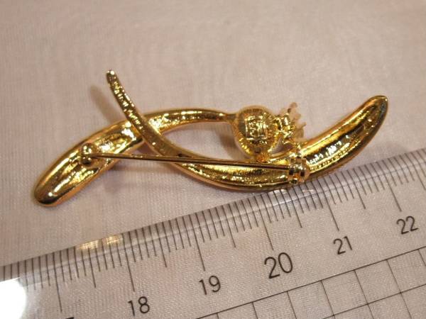 画像の、古いコスチュームジュエリーの素敵なブローチです☆このシリーズは、ユーロ製や、本場米国製、または、それらの国に輸出用に古い時代日本で作られたもの、のいずれかです。最近の安いものとは違って、メタルも鍍金も使われているお素材、金具も高品質なもので美しいです。(おそらくは大半が真鍮製、もしくは錫など合金メタルです)古いコレクションなので、お素材ははっきりとは分かりませんが、どれもとてもデザインもゴージャスでお素材も良く素敵と思います☆古いものなので相応の経年感や、金具など堅い場合や、多少のお直しが別途必要な場合もありますこと、その旨、ご了承いただいた上でご入札ください☆