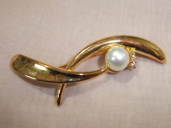 レトロ♪古いコスチュームジュエリーブローチ♪ビンテージアンティークデザイン☆古いフェイクパールとラインストーン使用のヴィンテージデザインがゴージャスでレア♪新古品☆古い手持ちコレクションより処分☆