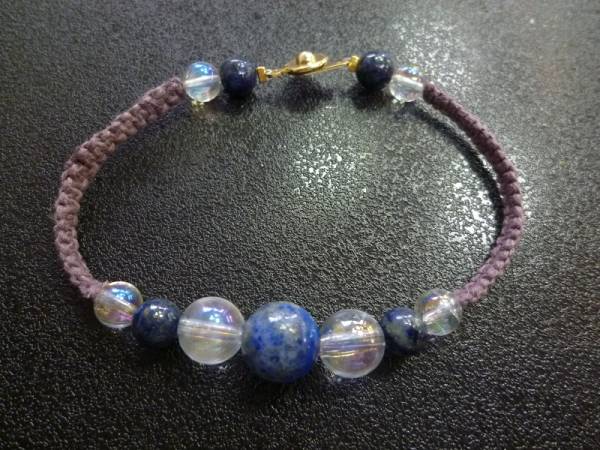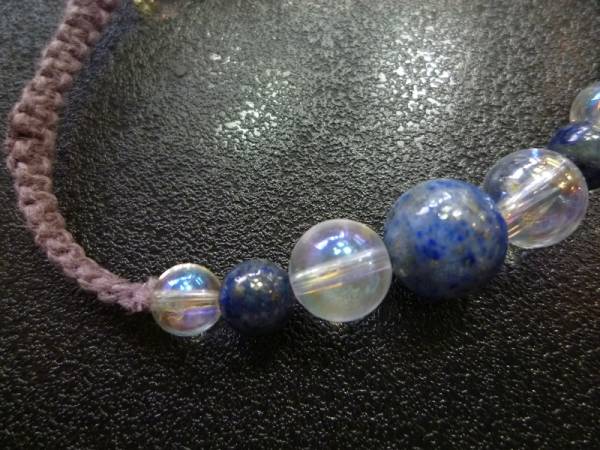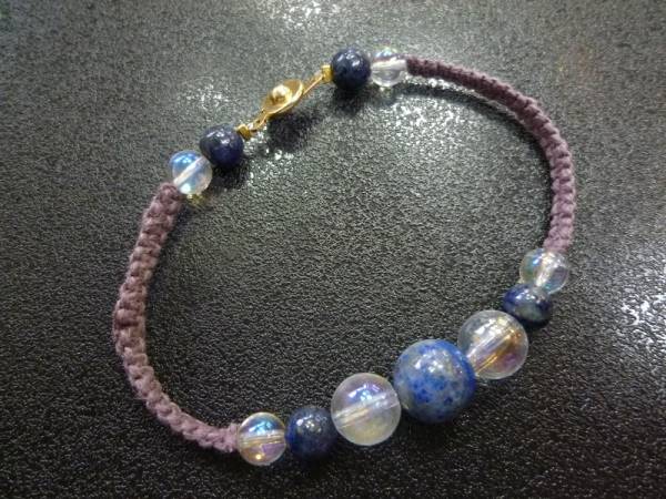 ラピスラズリ ホワイトオーラクォーツ 手編み ブレスレット