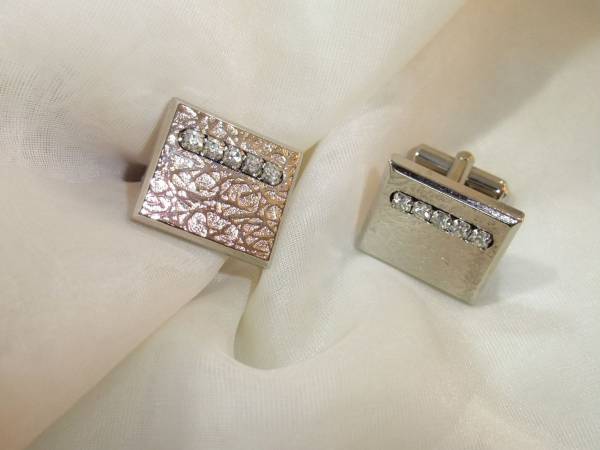 画像の、シンプル粋なデザインが良い感じのカフスリンクスカフスボタン、本場オーストリア製クリスタルラインストーン入りのシルバーカラーです♪未使用ですが、古くて、まとめて箱に入れて保管してあったので、ややスレや経年感あるかもです☆でも見た感じとても美品と思います♪まずまず美しい状態でコンディション良いです。ユーロかアメリカのデパート辺りで購入したコレクションの中からで、お色もシルバー色でさりげにきらりとした存在感のあるタイプでお薦めです♪
