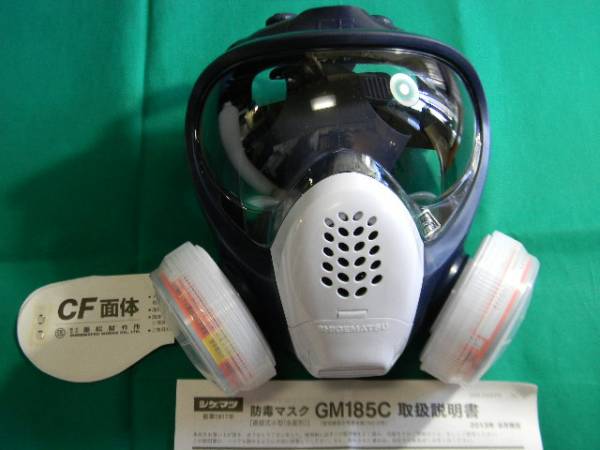直結小型全面形防毒マスクGM185C ・CA-104N2/OV吸収缶2個+交換用予備吸収缶2個計4個・デュポン社のデュポンタイケムC化学防護服・シューズカバー・手袋(インナー用2組)の9点セットです。直結小型全面形防毒マスクGM185C (画像2)は2品しかありませんので試着した写真を撮れず、他のダブル吸収缶式防毒マスクを装着した画像1を使用しています。化学防護服はタイベックにポリマーコーティングが施されていて、●マスクにも沿いやすい伸縮性の顔口部●縫い目は、テープによりバリア性が向上●手、足の裾のしぼり●ファスナー部分からの浸透を防ぐためファスナーカバーはフラップ(粘着テープ付き)になっています。シューズカバー・手袋は新品未使用、吸収缶は未使用保管品・化学防護服(ネットに入れたら普通に洗濯機で洗えます。実証済み)も未使用品ですが、保管品のためパッケージのビニール袋に若干の使用感がある場合があります。画像を良くご覧の上、ノークレームノーリターンでよろしくお願い致します。