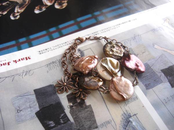 大人可愛い・セレクト・・シリーズです♪特別な気分・・個性的なバロックの淡水パールの2連のブレスレットです♪存在感のあるパール なのでシンプルなデザインに仕立てました♪♪20ミリから25ミリ位までのコインや楕円形のバロックの淡水パールです♪デザイン チェーンを合わせてシックな表情です♪長さは23センチ位で調節自由です♪お揃いのネックレスも出品しています♪ハンドメイドを ご理解頂いてノークレーム、ノーリターンでお願いします