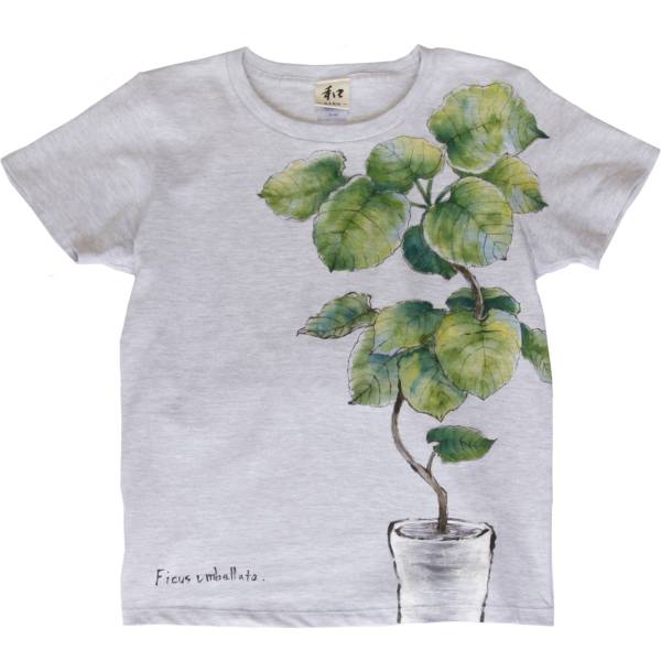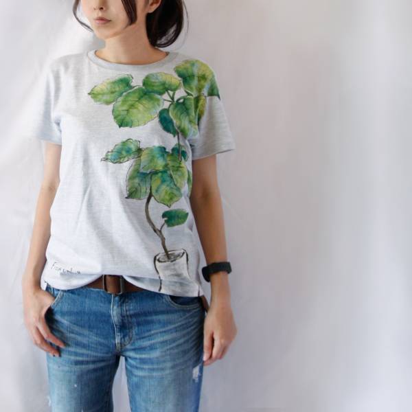 ハンドメイド 手描きTシャツ レディース Tシャツ フィカス・ウンベラータ柄Tシャツ 手描きで描いた観葉植物のTシャツ | |||