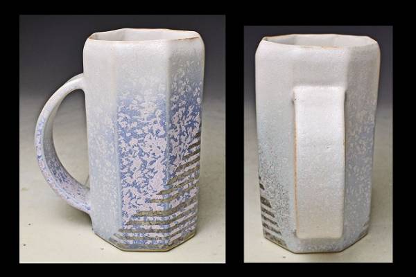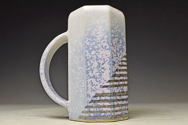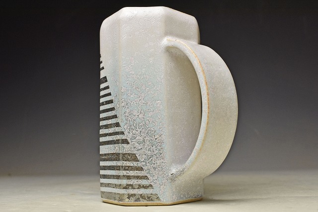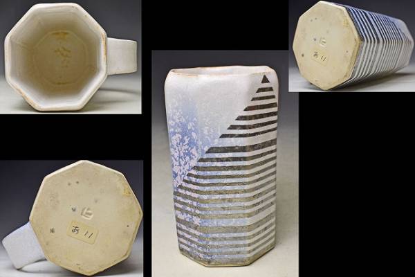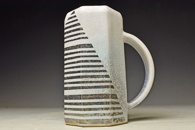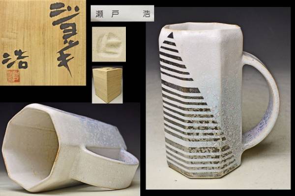 サイズは 117mmx82mmx高さ146mm です。 人気作家 瀬戸浩 氏の 作品 です。 お得意の ストライプ文で 珍しいジョッキです。写真を参考の上入札ください。宅配便80サイズにて発送します。他にも多数出品してます。同梱対応いたします。