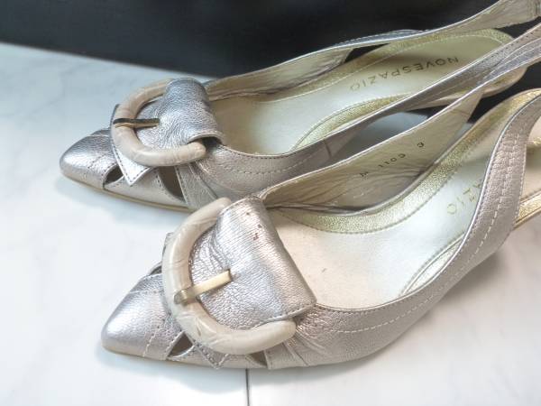 2万★NOVESPAZIO ノーベスパジオ★ シルバー系 本革 パンプス サンダル 23