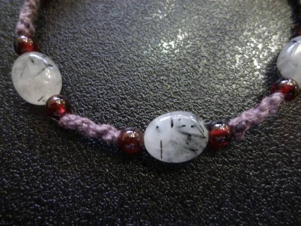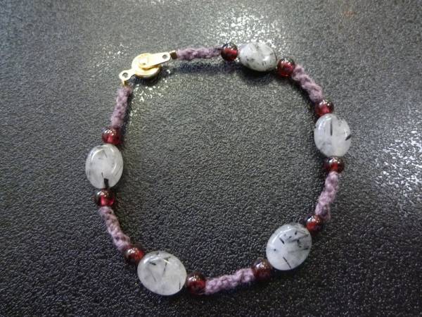 トルマリンインクォーツ ガーネット 手編みブレスレット