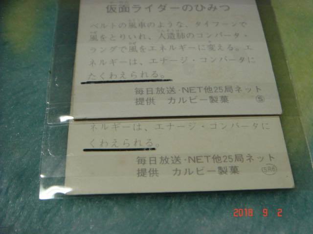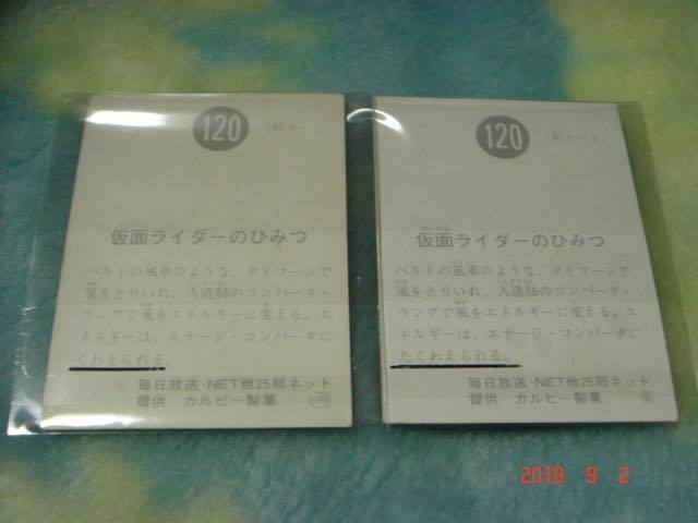 *激レア カルビー 旧仮面ライダーカード NO.120×2枚 (SR6版&S版)  『文章面:くわえられる&たくわえられる の違い』*