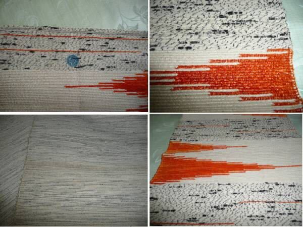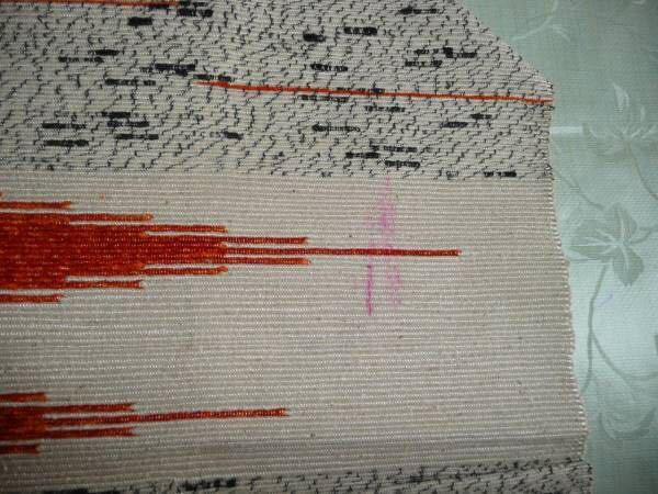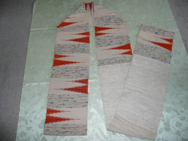 ■女性用 単衣帯 絹 リバーシブル クリーム色地 オレンジ黒■