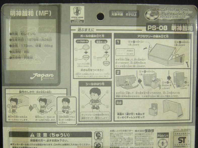 ・ 台座にフィギュアの軸足をはめ込み ボールをセットします。・ フィギュアの背中のレバーをはじきボールを打ち出し 2種のアクセサリーボールを入れて遊べます。・ 又台座を前後逆にすると低いボールをける事も可能です。