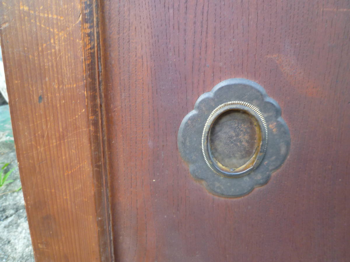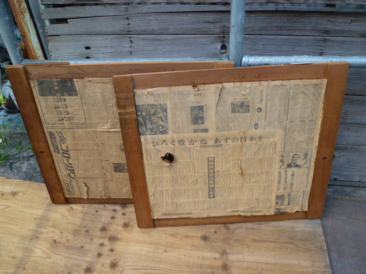 こちらは古い引き戸の2枚組セットとなります。和箪笥で使用されていました。明治頃のものだと思われます。高さ69.5cm、奥行2.7cm、横幅83cmです。割れなどあります。裏面に新聞紙が貼られています。セカンドハンド品につき、傷、汚れなどございます。ご了承の上でご入札下さいませ。