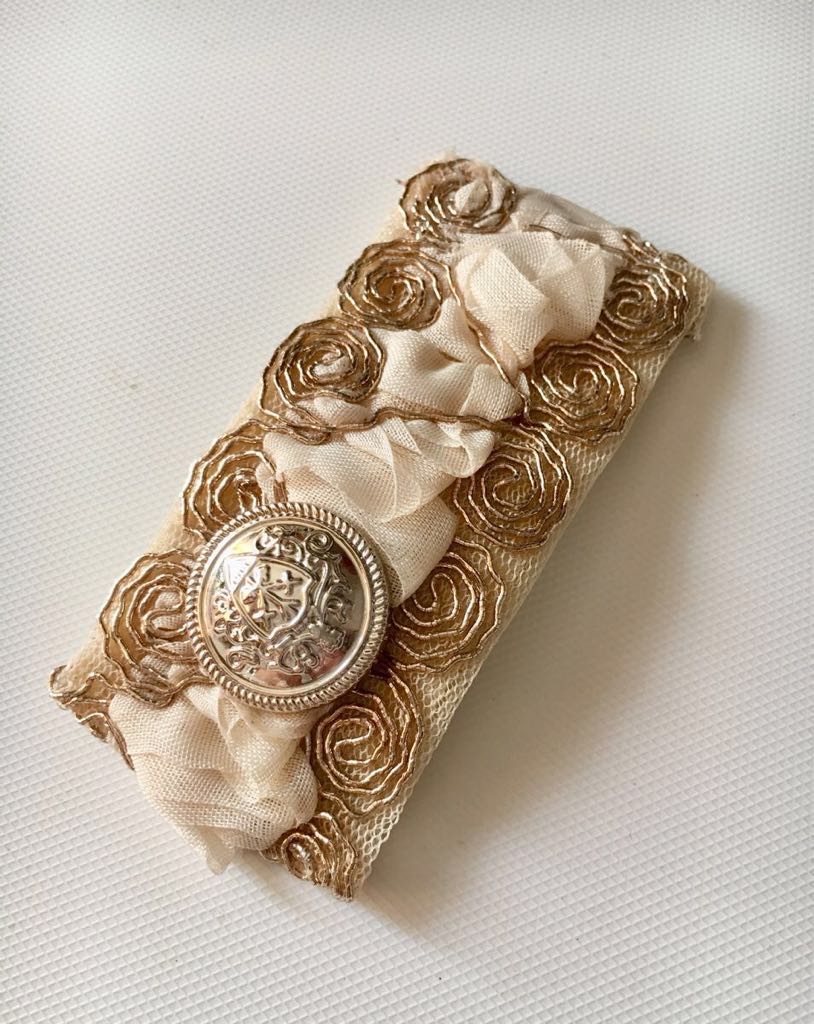こちらは、アイボリーの生地にゴールドのワイヤーでお花のようにデザインされている、可愛いヘアピン になります♪