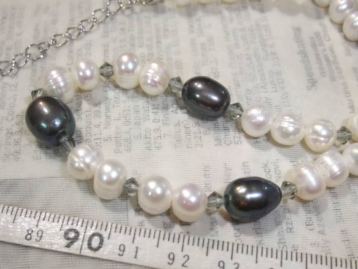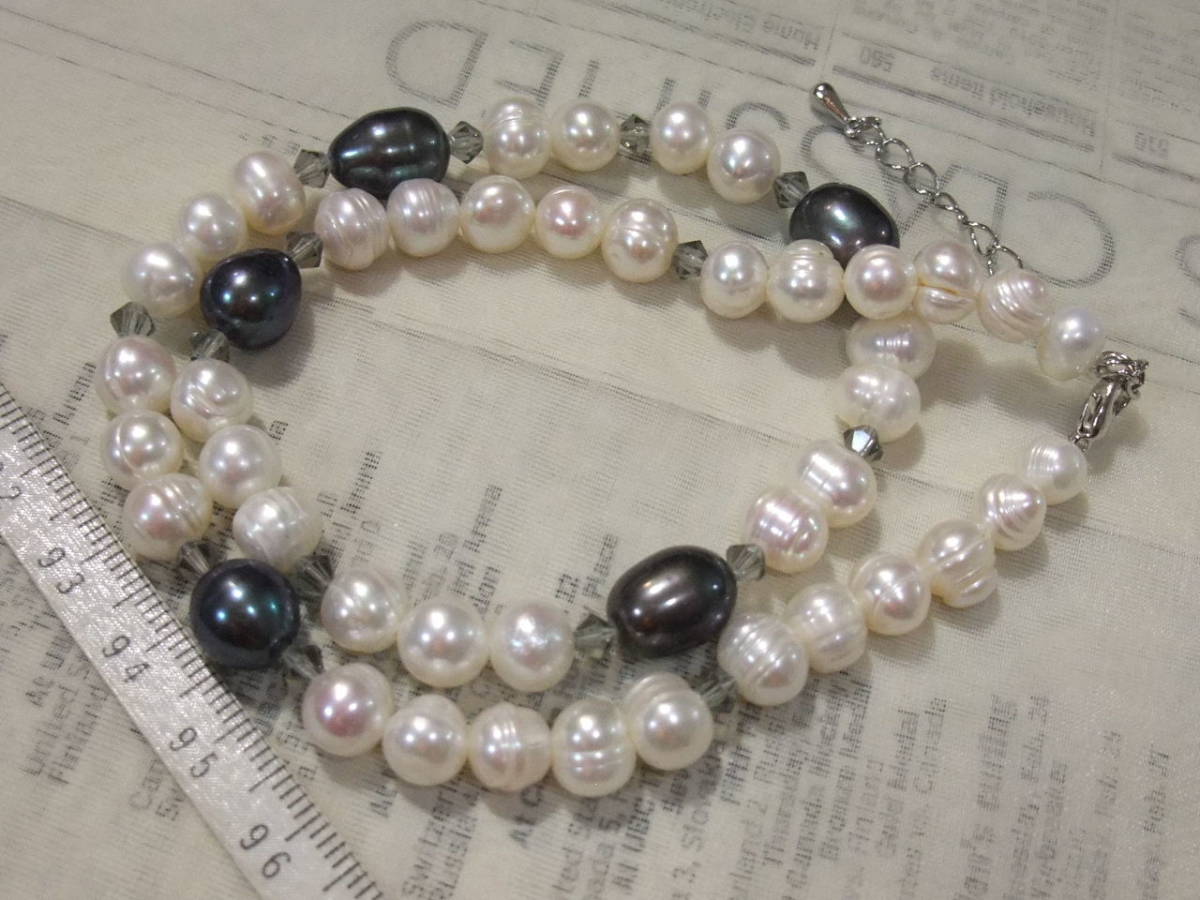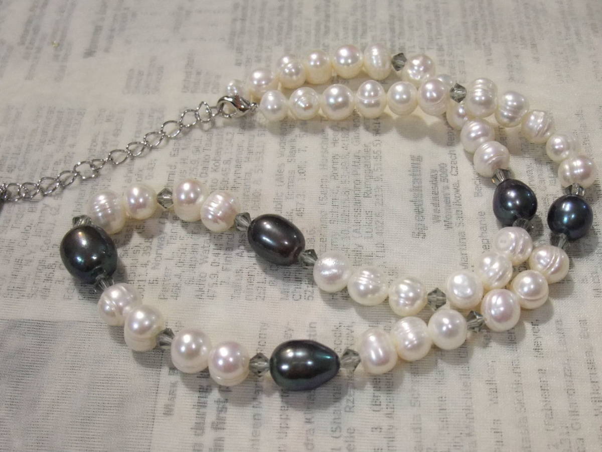 人気セミラウンド系白真珠とオーバル系大粒黒真珠ネックレス淡水真珠♪テリツヤ綺麗なナチュラル系白真珠と大きめ粒黒真珠、キラキラのカットの綺麗なクリスタルカットグラスのクールなお上品系♪淡水真珠の高品質ややバロックセミラウンドポテトで南洋真珠のようなサークル入りでラインに動きのあるタイプ♪♪お素材として使ってもお得で、この価格なら初心者の方でも気軽に製作にお使いいただけます♪♪