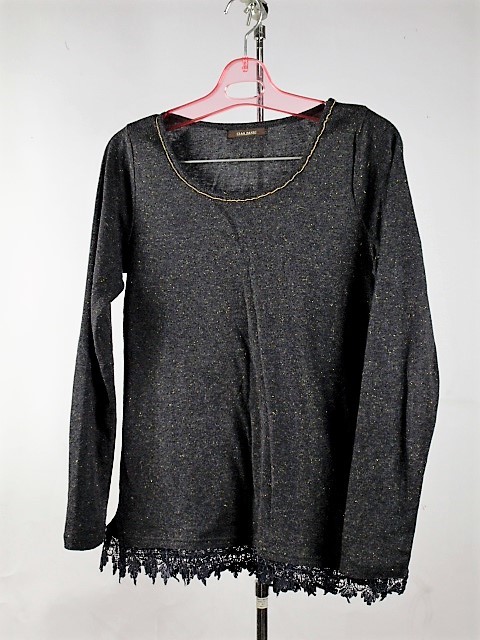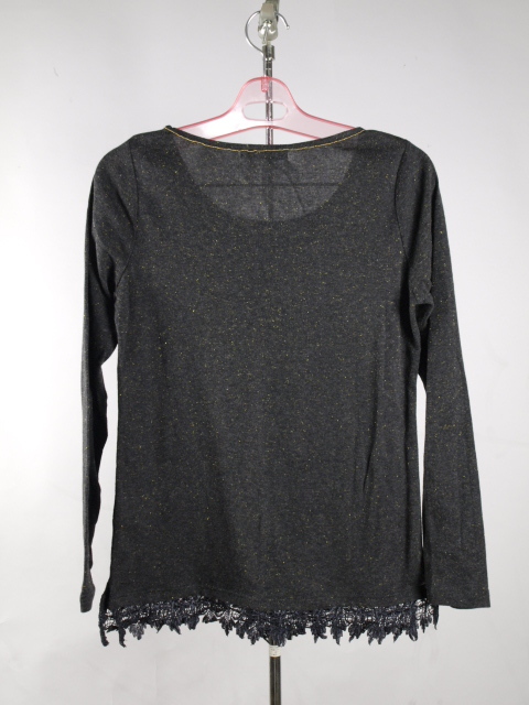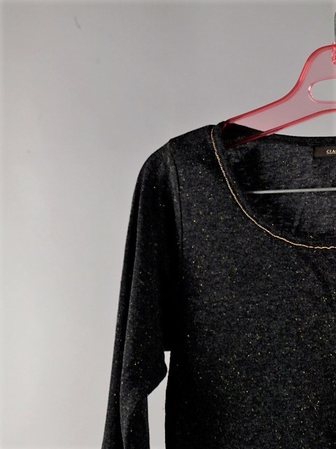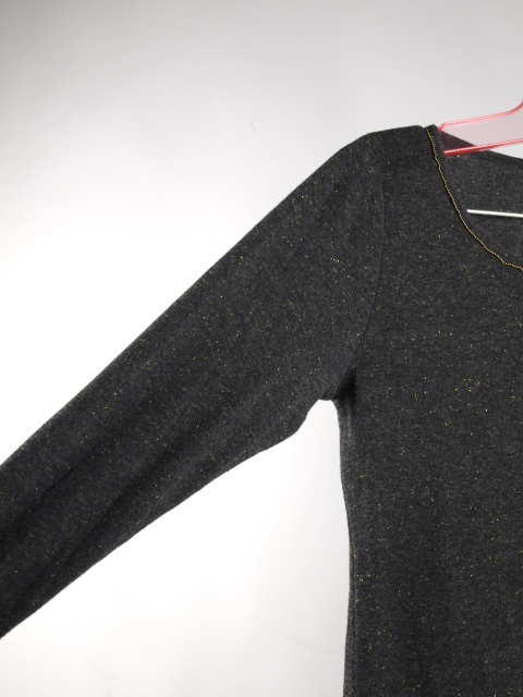 首周りの金のラインと全体に織り込まれた金ラメが綺麗なトップスです♪