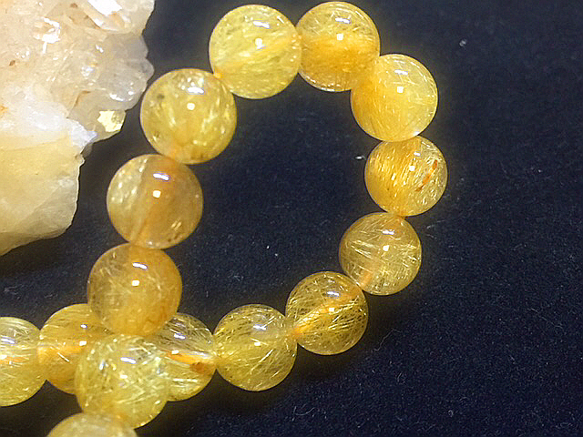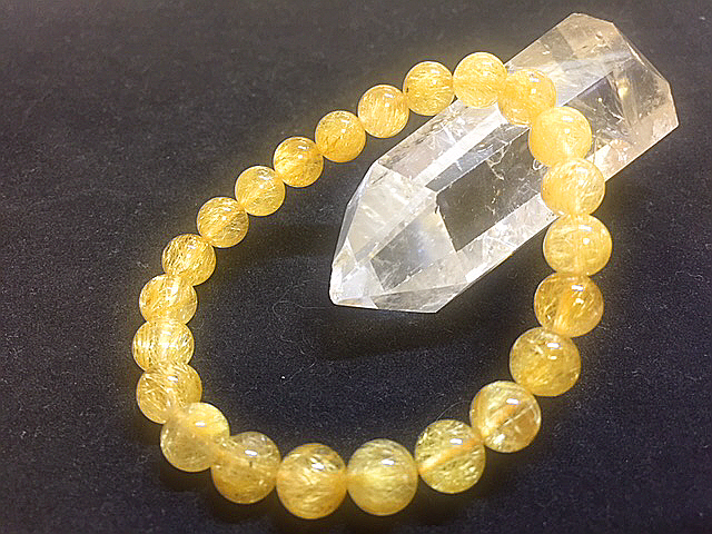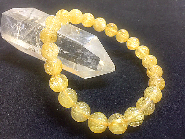 天然石最強の金運up【黄金タイチンゴールドルチルクォーツ】ブレスレット 内寸17㎝ 細い男性サイズ 8.6㎜ パワーストーン お買い得②