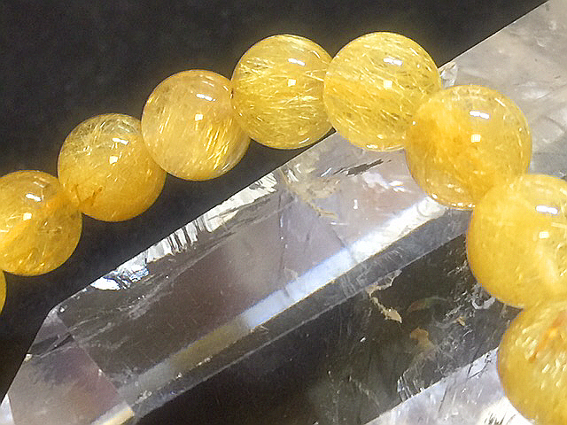 とっても綺麗な、【ゴールドルチルクォーツ】ブレスレット 内寸17㎝ 細い男性ならいけるサイズです。 8.6㎜粒です☆