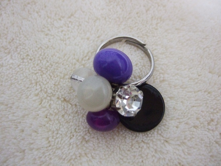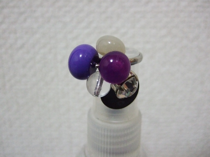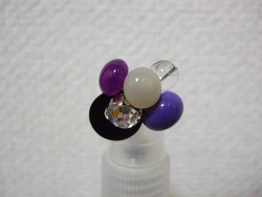 美しい フランス パーツ製!デザイナーズ ハンドメイド クリスタル 紫 パープル 黒 ビーズ シェル 超美 オシャレ リング 指輪☆即決 PayPay