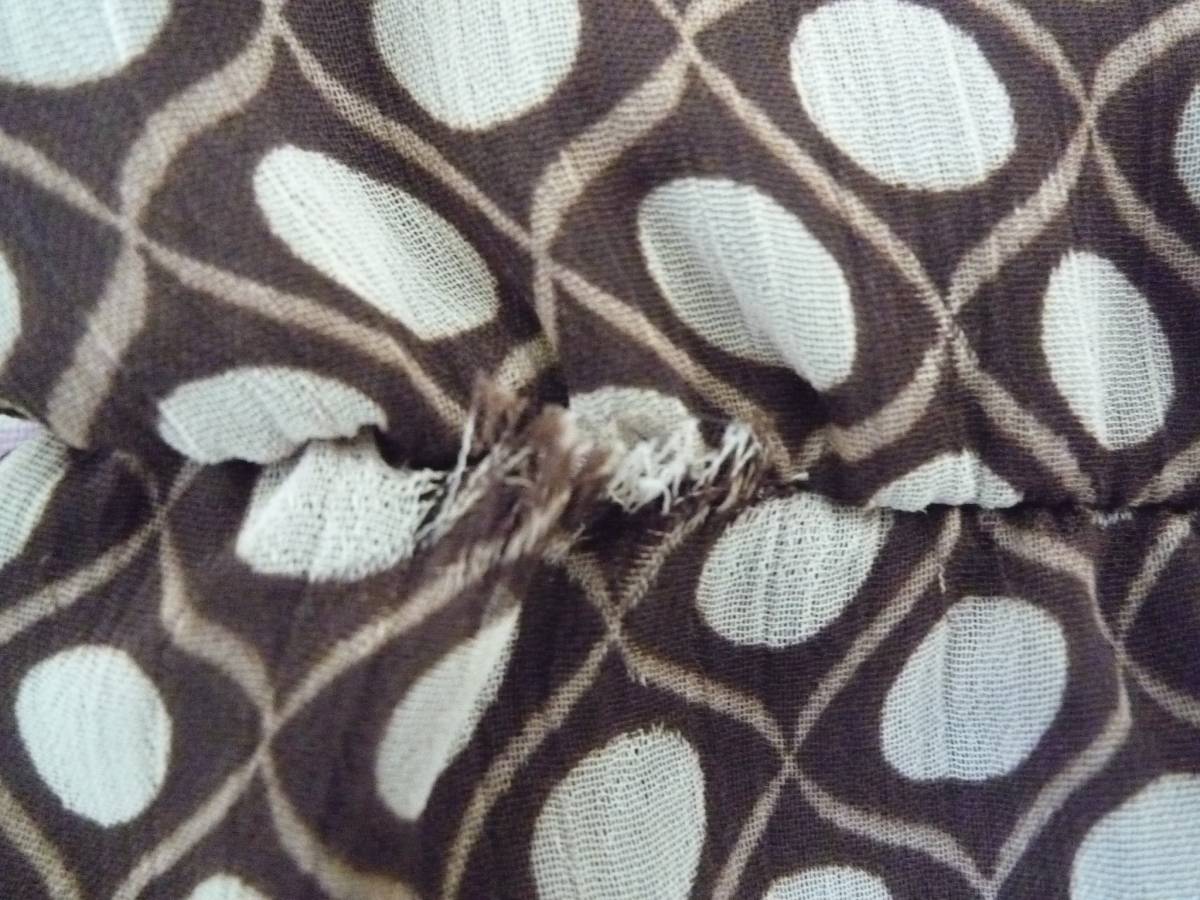 後ろ身ごろ縫い目辺り目立つほつれあり(写真参照)
