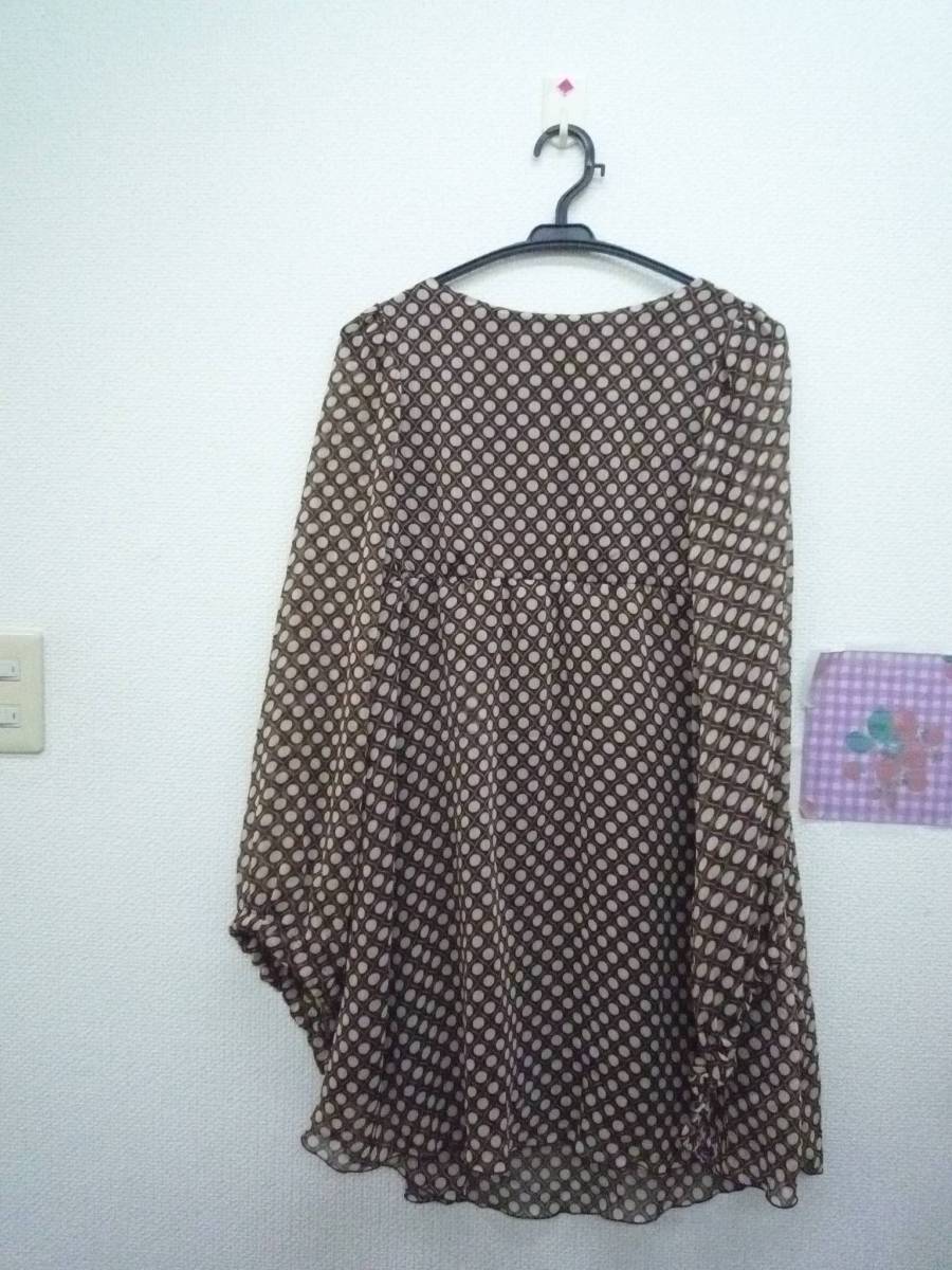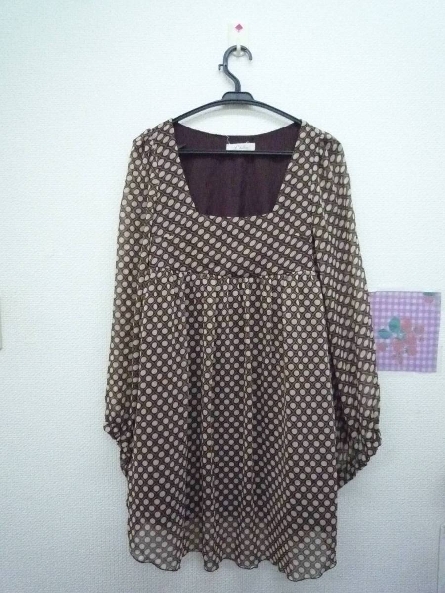 ★レディース長袖チュニック 総柄 ドット 茶系 M