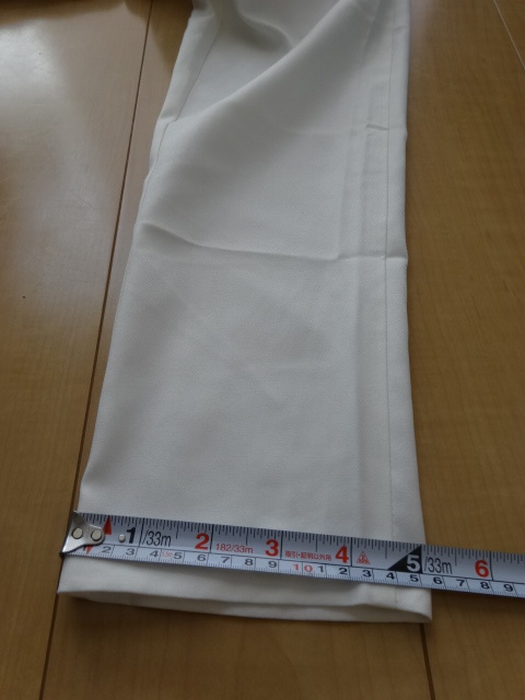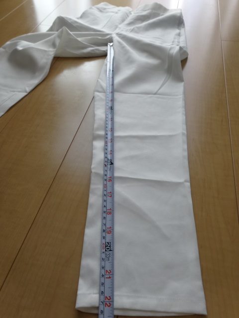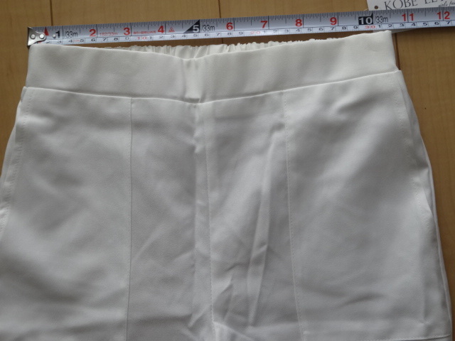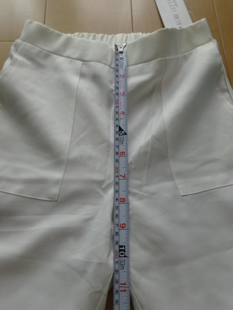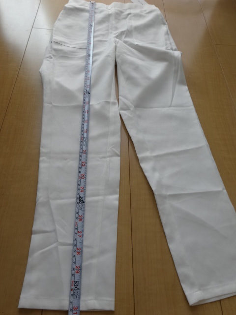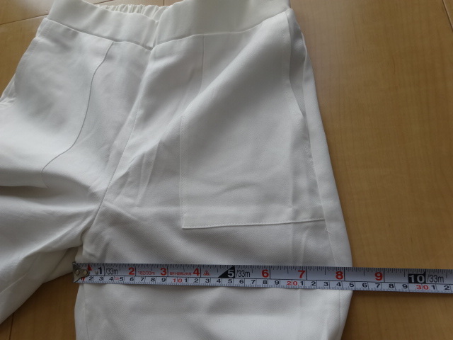 新品未使用のレディースホワイトパンツになります。 色はホワイトで透け予防の裏地付きです。 ポケットは前左右に付いていて便利です。 ★サイズ・・・M ※平置き実寸 ★ウエスト 約32cm ★総丈 94cm ★また上丈 27cm ★わたり幅 25cm ★すそ幅 16cm |