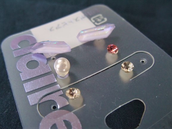 新品未使用 送料 普通郵便110円 ※台紙から外して平らにした状態での発送となります。 樹脂ポストピアス 下段の一番大きなピアスの長さ 約1.7ミリ。上段の光る石のサイズ 直径約4ミリ 他にも、アクセサリー、家庭の不用品等沢山出品しています。是非見てください! 他の商品との同梱の場合の送料など、お気軽に質問してください。 | |