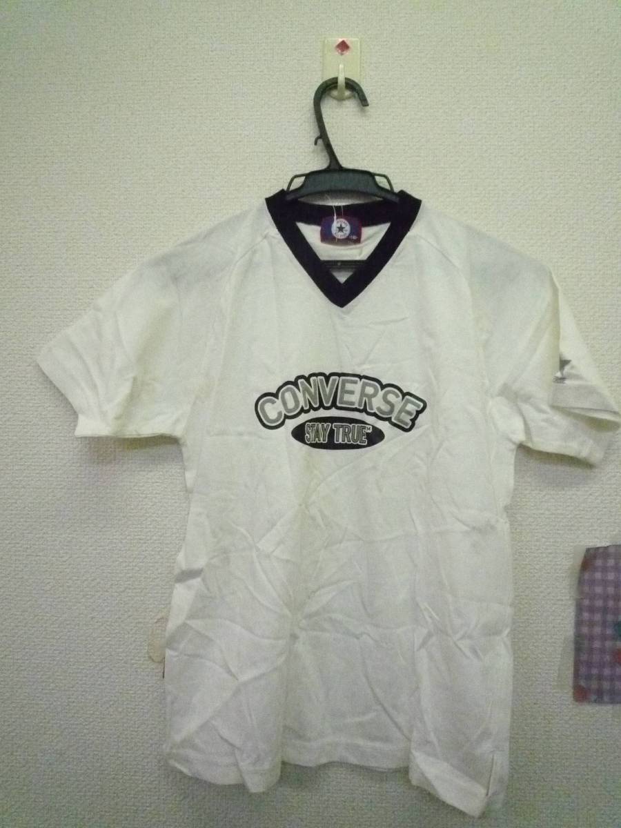 ★タグ付き【コンバース】半袖 Tシャツ  Vネック  白×黒  【140】 ※訳あり