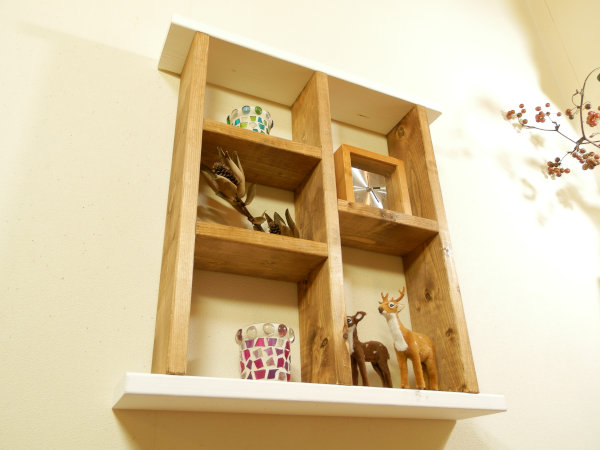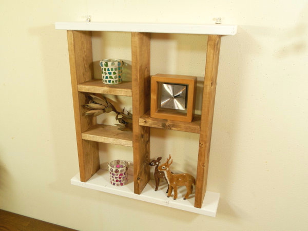 アンティーク風飾り棚です。 全ての棚に吊り金具が付いているので簡単にネジ、押しピンなどで壁に付けるようになっています。 サイズ、詳細。 幅45cm×高さ48.5cm×奥行き9cm 左の3マスは各、幅16CM 高さ14CM (中央部分のみ12cm) 右の2マスは各、幅16CM 高さ21.5CM ※ネジ類は全て埋め込み加工し、見えなく仕上げております。 同梱発送について。 ・他に出品されているセット商品との同梱発送や取り置きにも対応致します。 同梱発送の場合は、下記の送料表より+400円となります。 ※こちらの商品は「かんたん取引」で出品しておりますので、 複数個ご落札頂いた際は、同梱送料をお知らせいたします。 ※商品ラインナップは随時変更しておりますので 在庫が無くなり次第、再出品を行わない場合があります。 7セット以上の同梱発送をご希望の個人、業者の皆様へ。 まとまった数の商品をご希望の方は、 質問欄からその旨をお知らせ頂ければご案内させて頂きます。 |