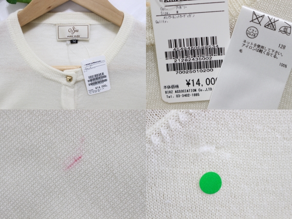未使用のタグ付きになりますが、右胸に赤いインク汚れ、左肩に若干のひっかけ跡がございます。