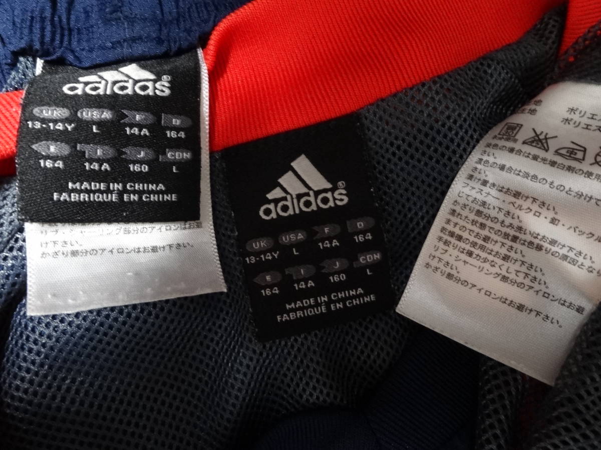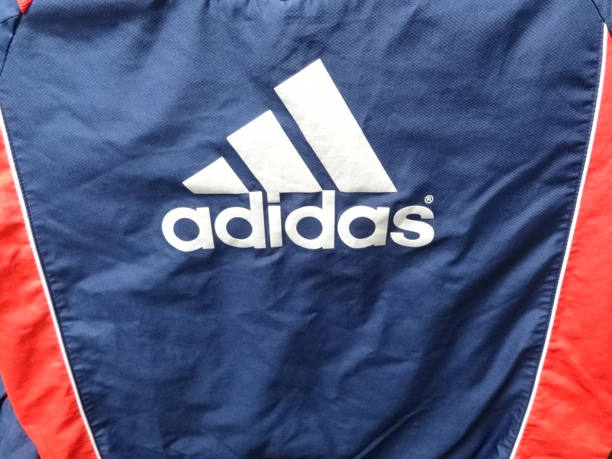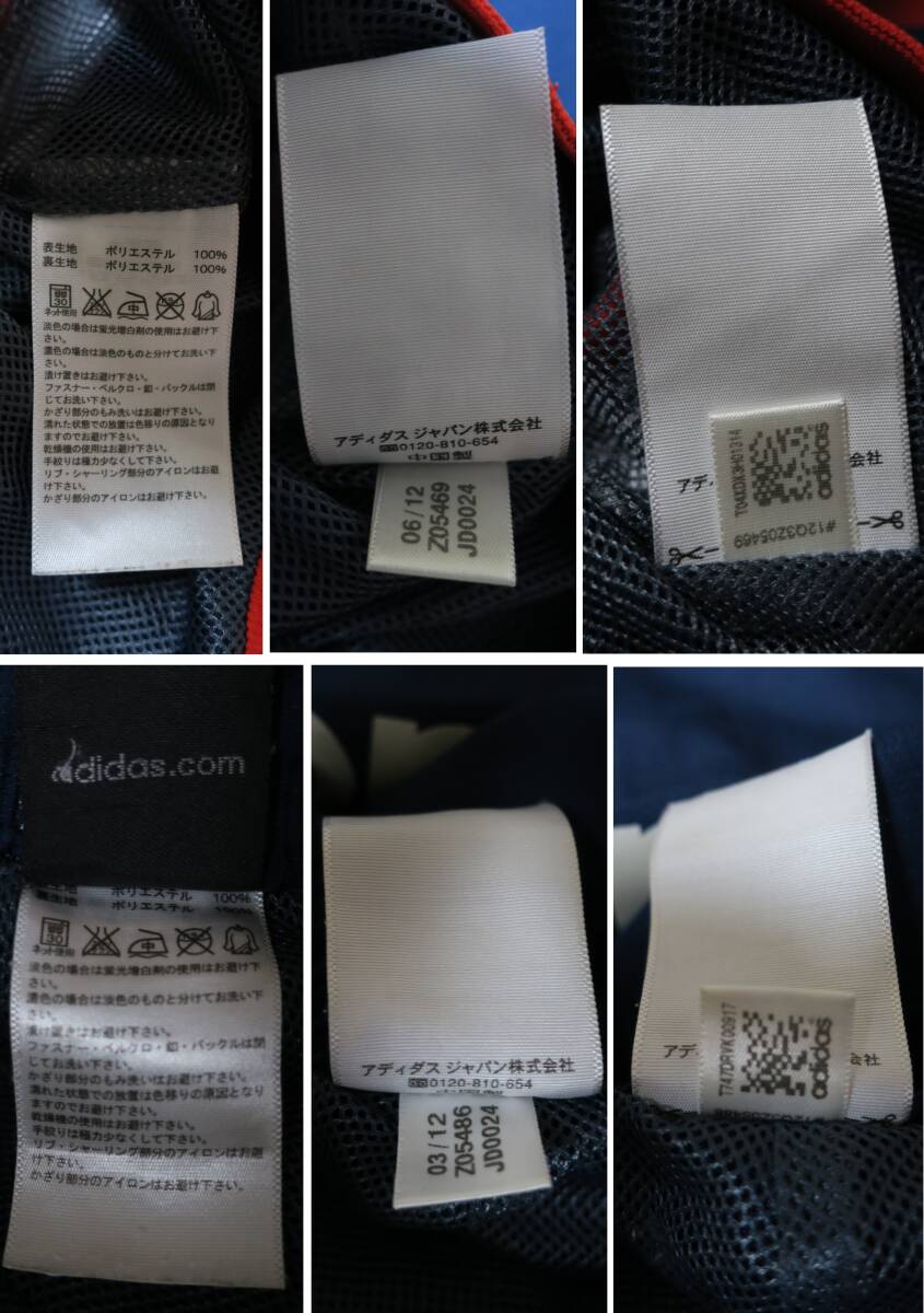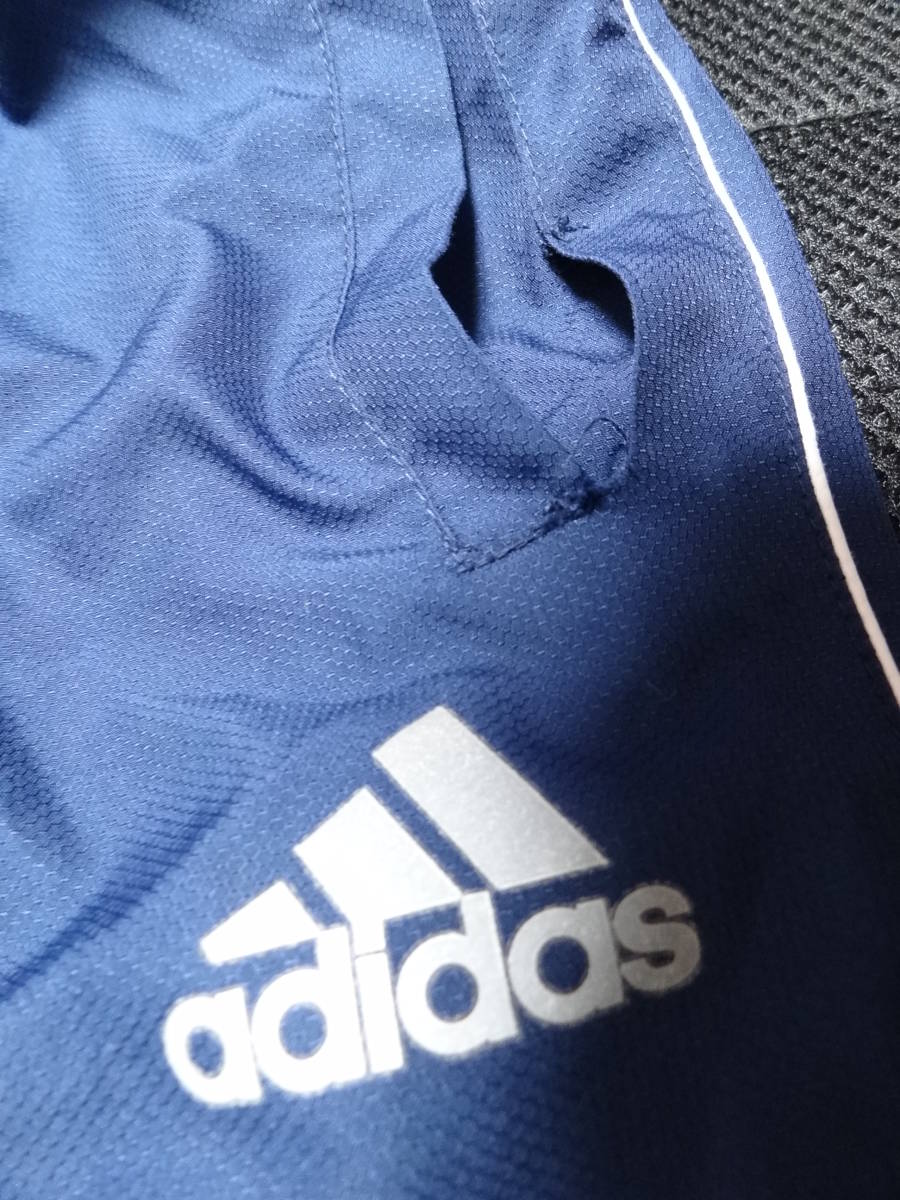 ジャケット 綺麗な状態です。 パンツ ウエストのゴムが伸びており、裾がのゴム部分に破れがあります。裾のファスナーの取っ手部分が両足ともしれてしまっており、ファスナーが動かし辛くなっています。ポケット付近にほつれもあります。 色はネイビーです。 上下ともにメッシュの裏地がついています。 ジャケット サイズ 160 着丈64cm 身幅52cm パンツ サイズ 160 総丈98cm ウエスト38cm (採寸の誤差はご容赦ください) |