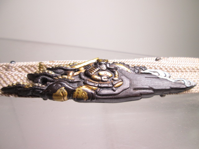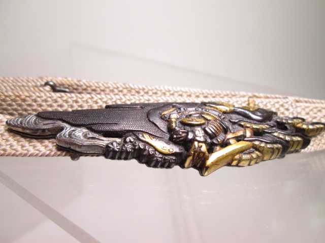 【江月】 アンティーク・金工 金銀象嵌 武者と松文の帯留め 18g