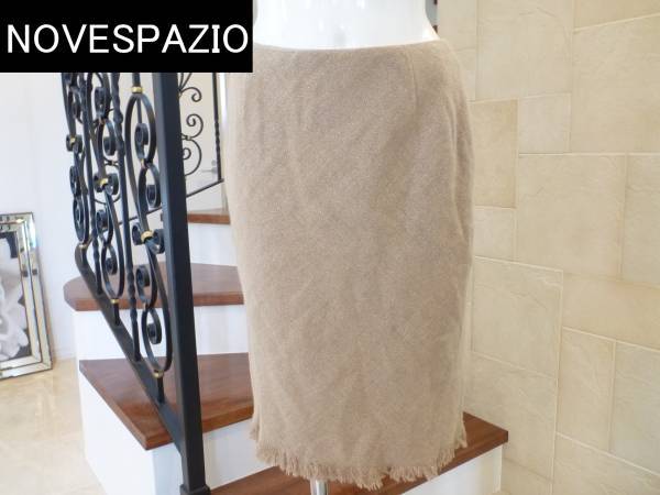 2.5万NOVESPAZIOノーベスパジオ ベージュ 裾フリンジ ウール タイトスカート 36  S相当