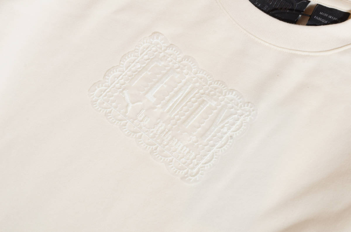 ロゴ刺繍のレースがあしらわれたかわいいデザインです。