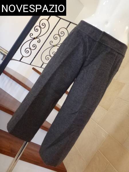 2.5万 NOVESPAZIOノーベスパジオ グレー ハーフ ウール ワイドパンツ38 M相当