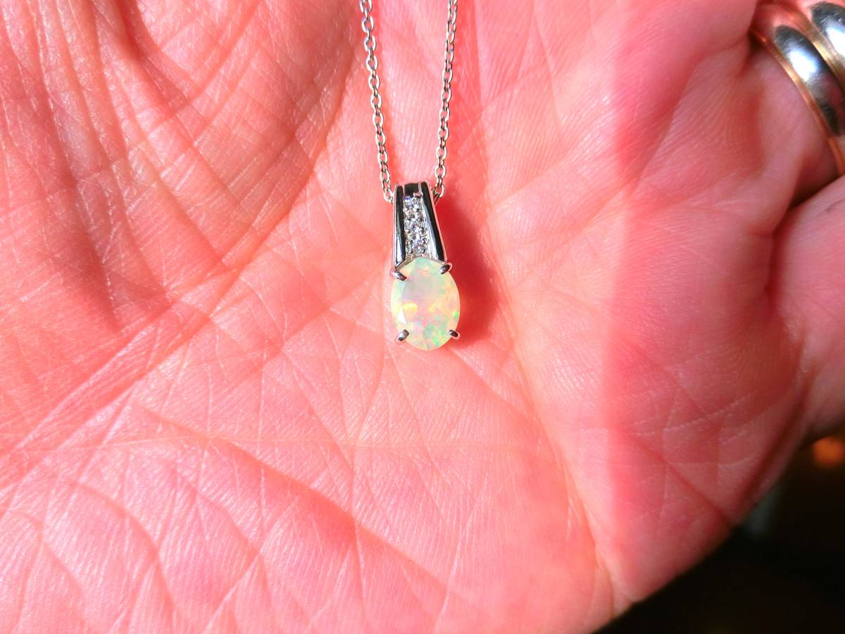 瑞々しいクリスタルの質感でありながらクラックも皆無であり、尚且つはっきりとした遊色を持つこちらのオパールペンダント。間違いなく価値ある逸品と言えるでしょう。