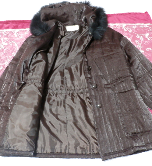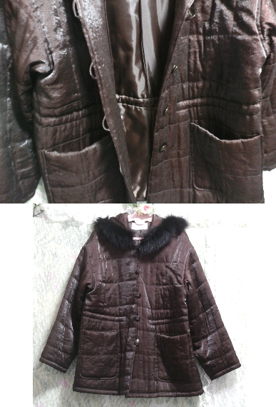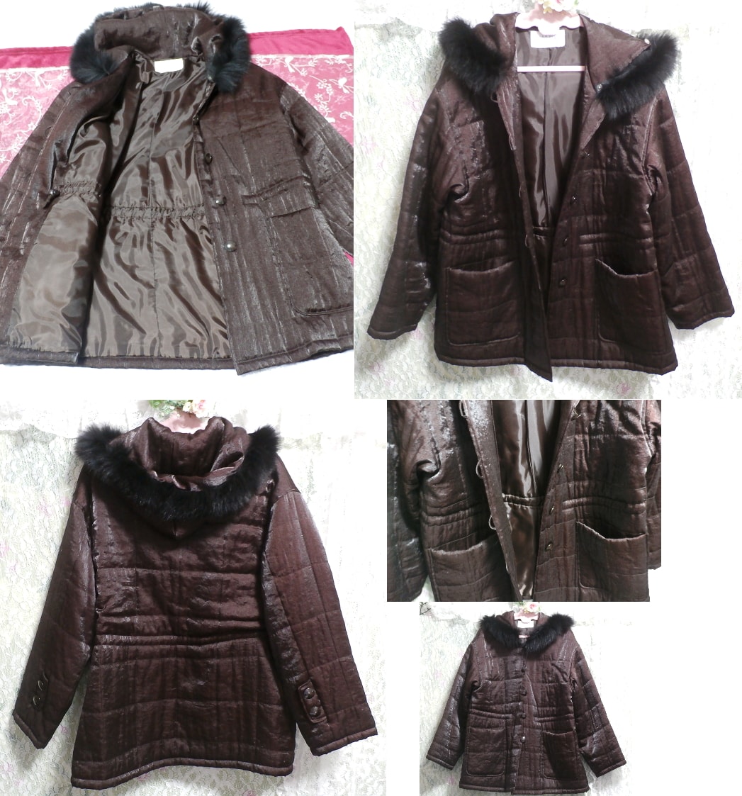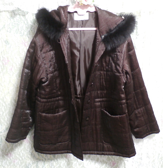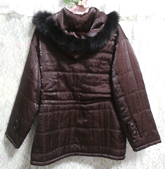 こげ茶色のフード付き光沢フワフワあっかたコート/外套 Dark brown hooded glossy fluffy coat