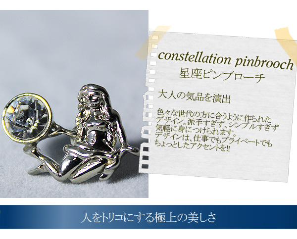 星座ピンブローチ おとめ座/乙女座 タイピンにも アクセサリー/スワロフスキー 美少女 プレゼント梱包無料 有名デザイナーがデザイン